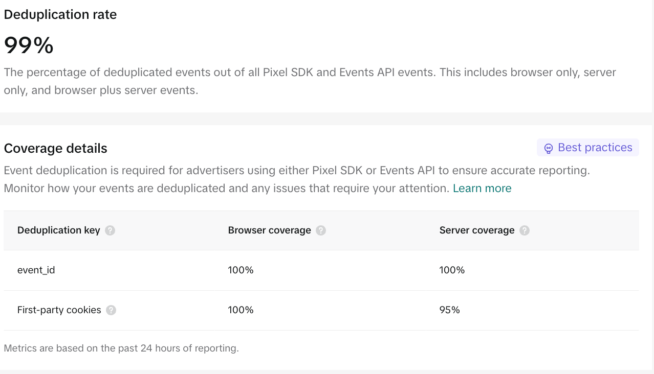 The integration adhered to TikTok’s best practices, enhancing the Event Match Quality Score and improving the synergy between data and performance.